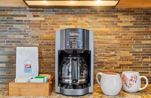 You'll enter into a welcoming and open floor plan of the kitchen, living room, and dining room. The open space extends even further onto the wrap around deck with an outdoor dining table and BBQ. The kitchen features beautiful custom cabinetry with lots of space for the abundant cooking utensils and tools provided for guests, stainless steel appliances with gas range, granite countertops, and a spacious pantry stocked with cooking essentials (flour, sugar, etc.). Cook, bake, eat, and enjoy company in the open space of the main floor living area!