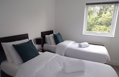 Exclusive garden view apartment with 2 x balconies. This modern 1st floor apartment is located in a residential area in Southampton and has 4 double or twin bedrooms with 3 bathrooms one being en suite. With all the mod cons, this is the place to stay in when visiting Southampton. Fast fibre optic broadband is available throughout at no extra cost and free off road parking included when you book.