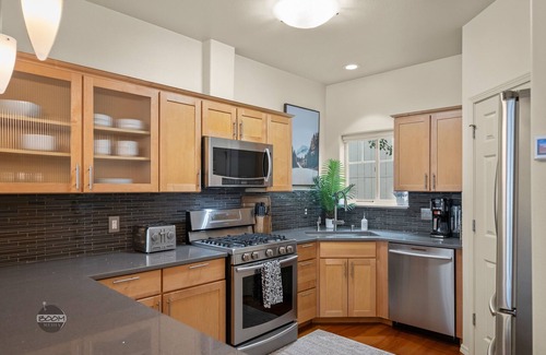 Experience Alaska living with sophistication and convenience. The condo boasts a blend of desirable features that elevate your stay, including the cozy ambiance provided by two gas fireplaces—perfect for unwinding after a day out. For privacy and ease, both spacious bedrooms feature an ensuite full bathroom. Additionally, your stay includes private garage parking, keeping you and your vehicle protected from the elements. A dedicated workspace ensures productivity for corporate guests, perfectly blending home comfort with professional needs.