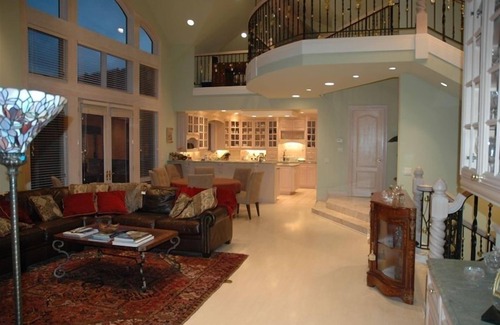 Warmth, comfort and relaxation are provided through the Roman spa tub, steam shower, beautifully appointed kitchen, 3 fireplaces (living room, family room and master bedroom), and 2 large 65 inch 'big screen' TVs with premium cable stations. A kayak is available for use. If business must be conducted during your visit, simply climb the spiral stairway to an upstairs office.