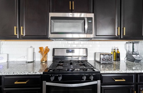 The kitchen is fully stocked and has all of the necessities that you should need. The big kitchen island makes cooking much more enjoyable with your friends and family.