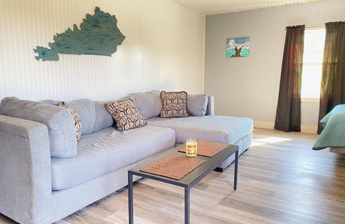 This secluded paradise will give you that easy peace you’ve been struggling to find. In the hills of bourbon country, KY with hundreds of acres to explore as far as the eye can see in all directions; enjoy the quiet, no neighbors and no worries. Just natural ambience of calm! A guaranteed “never want to leave” stay. Hike the trails, pet the horses, play some disc golf, plan a kayaking trip on Rolling Fork River, lounge in the hammock, roast some marshmallows over the fire, or take a nap! This is the camping ... that isn't really camping at all. The cottage houses everything any ideal stay should offer.