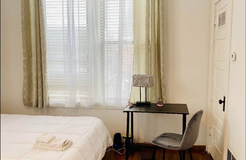 The whole group will be comfortable in this spacious and unique place ,sunny, and happy place .with a lot of closets,. Cozy and very well decorated living room with 42” tv. Sofa and comfortable arm chairs . Soft rug separate living room space with dining area creating happy cozy ambiance.the blackout curtains are just perfect for a good night’s sleep.A small corridor leading to the fully equipped kitchen and a full bath. Large windows overlooking directly on N.High street, where you can see all the actions of the main street. buzzing restaurant district full of happy people.
