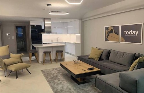 6th floor corner apartment in a new modern highrise in the center of Athens, on the blue line metro. Uninterrupted city views from the living room balcony and the bedroom balconies. The apartment is brand new, with tasteful furniture and all the amenities. Indoor secure underground parking comes (for a regular sized car). Enjoy stunning sunset views of the Parthenon, the Acropolis and the Athenian skyline, like a true Athenian!