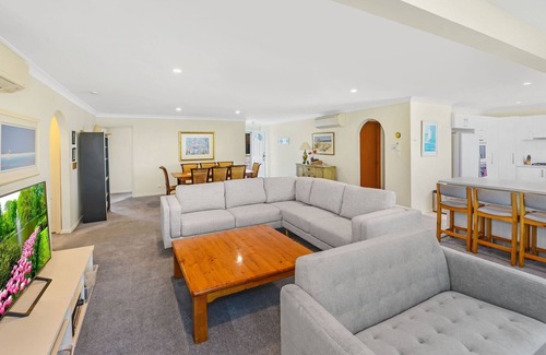 Forresters Beach Family Accommodation - Rent this whole 7 bedroom absolute beachfront property at Forresters Beach or you can rent the upstairs separately.