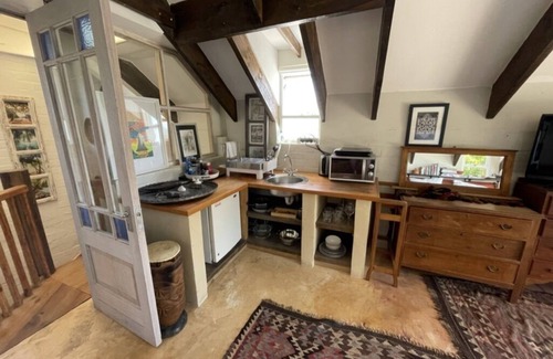 (Additional space) Upstairs Milkwood Cottage has a KING bed and ensuite bathroom with shower, separate parking and entrance
