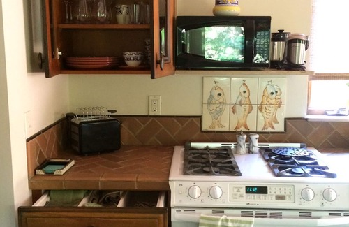 Charming casita brightly lit by natural light and surrounded by lush vegetation and trees. Walk to great restaurants, two theaters, Whole Foods, Starbucks, hiking trails, bike and ATV rentals. Enjoy a private, romantic setting yet so centrally located. King sized bed with luxury linens, fully equipped kitchen, large soaking tub for two, outdoor private spa and fireplace. As our friends say, "close to perfect - and everything else!"