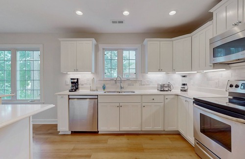 Nestled in gated St. James Plantation, NC, Fairway Pines, newly renovated with modern upgrades and under new ownership, overlooks Founders Club Fairway #3, where chirping birds and whispering pine trees weave a peaceful retreat. Just 15 minutes from Oak Island’s beaches, this non-smoking, pet-free haven sleeps 8, blending rural charm with modern elegance.