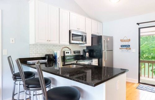 FANTASTIC VIEWS IN ALL DIRECTIONS!!! This Lovely Condo overlooks the golf course with spectacular views of Rumbling Bald Mountain. Or enjoy the peace and serenity of your back deck, which overlooks Bald Mountain Lake. Just a few steps away you’ll find a fishing pier, sheltered picnic table, and charcoal grill. And most of the amenities are a short drive or leisurely walk away, including Restaurants, the beach and cabana, and the wellness center.