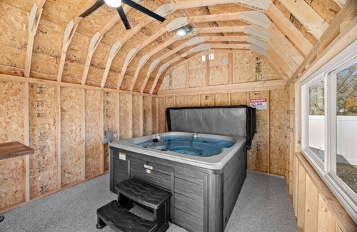Nestled on 1.2 acres, our Chalet offers beautiful surroundings and ample outdoor space to unwind. After a day of exploring the St. Charles Historic District or enjoying nearby attractions like Old Town St. Charles, unwind in our detached lounge area that includes a luxurious hot tub. Relax, grab a drink from the bar, and catch up on your favorite shows on the TV.