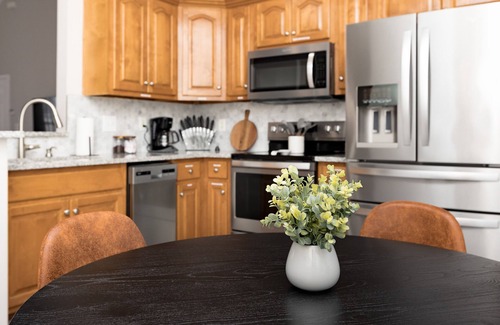 - Fully stocked kitchen