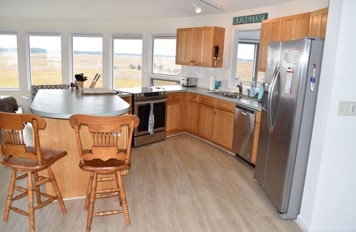 Unique round house with stunning 360 degree views directly on the estuary, where you can fish, kayak or take a short walk across the street to enjoy Broadkill Beach. For those looking to relax, the view provides wonderful bird watching across the wildlife refuge at the back door. You can see the sun rise over the bay in the morning, and set behind the preserve in the evening. The exceptional view makes this house like no other and offers a calming environment for not only vacationing, but working or doing virtual school if you crave a change of environment.
