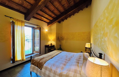 Set in the rolling hills of the Tuscan Valtiberina, the Paglia e Fieno Apartment is a cozy countryside retreat ideal for families, couples, or small groups seeking relaxation, nature, and authenticity. It’s located within Le Ceregne Bio Farmhouse, an organic farm with breathtaking panoramic views over Lake Montedoglio.