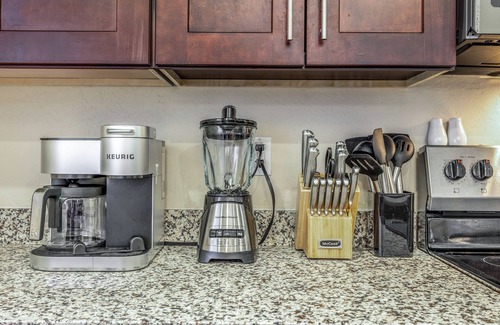 - Dual Keurig/drip coffee maker (bring your own coffee), blender, toaster