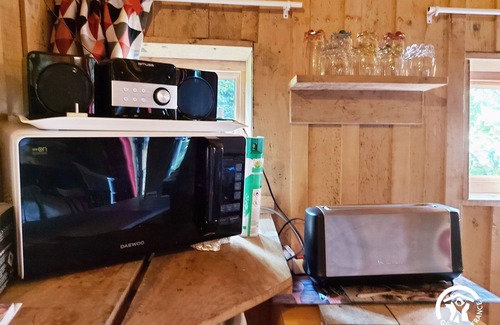 Try a night or more with the silence and songs of birds. The cabin is very comfortable: electricity, hot water, refrigerator, kettle, microwave, 2 electric hobs, toilet, bathroom and small wood stove. All-inclusive offer.