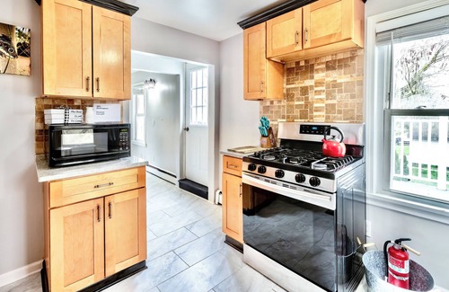 We hope you enjoy your stay! We are always looking to add more amenities to make your stay even greater! House has window a/c units as the heat is baseboard heating. A/C in dining room can not be ran at the same time as the bedrooms. We are looking at other a/c options.