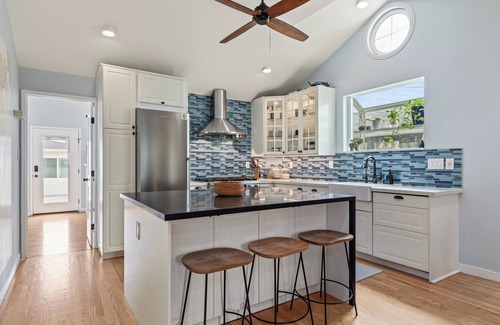 You'll love this modern, family home because of the fully equipped, professional chef's kitchen, vaulted ceilings, open-concept floor plan and large closet spaces. The house is located in a quiet, residential neighborhood that is centrally located between the beach & freeways.