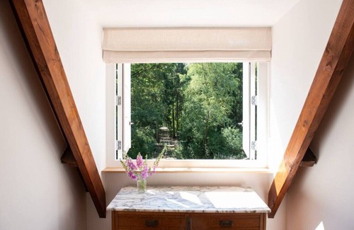 In a unique location, amidst the forests of Lunteren and next to the Wekeromse Zand, this detached holiday home is situated. The 1930s house has been recently completely renovated. It is exceptionally tastefully decorated and equipped with all modern conveniences. The surroundings are magical: nestled in the forest, on a 4-hectare plot, surrounded by deer, wild boars, squirrels, and a large number of birds. It is a fantastic experience to explore your own piece of forest amidst a concert of birds and immerse yourself in nature.