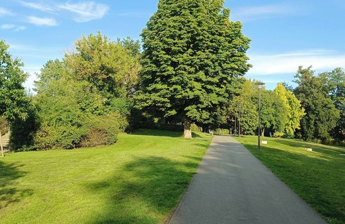 A special highlight is the green oasis of Bad Schönborn, the Sole-Aktiv-Park, a 3-minute walk from the flat. In addition to the park's sensory gardens, green fitness trail, sand playground and beer garden, another highlight is the Thermarium with thermal brine pool and sauna area, also within walking distance.