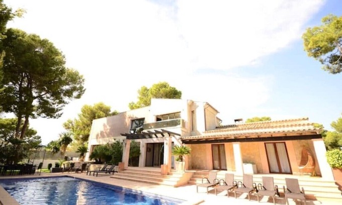 Nestled in Calvia, this 5-bedroom, 4-bathroom vacation home brings it all within your reach. Fans of nature and the outdoors will love being 5 minutes by foot from Magaluf Beach and 7 minutes from Playa Son Matias. Your feet will make short work of the 13-minute walk to Katmandu Park or the 13-minute walk to Momentum Plaza.