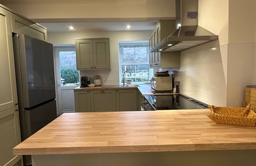 The front door to Farm Cottage 2 opens into an entrance hall (with loads of room for coats and boots) which leads into a large sitting room (equipped with open fire, double sofa bed for occasional guests, CTV, DVD) offering superb unhindered views west up to Creag an Sturra, a ridge of high hills flanking Melfort from the north and west . The sitting room opens into the kitchen and dining room (with oven, hob, fridge, freezer, microwave & dishwasher) with another door leading into the garden.