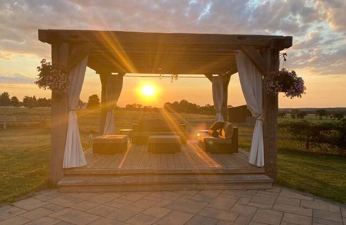Make some wonderful memories at this unique family & pet friendly modern Farmhouse just 10km to Barrie. Minutes to ski hills and snowmobile trails. Wood burning fireplace. Hot tub open year round. Master suite jacuzzi tub and private balcony. Wrap around porch with sunroom for a glass of wine or your morning coffee. Fully stocked kitchen. High speed internet. Enjoy the stars in the clear night sky. Ping pong table, exercise equipment. Great location with ample parking. Horses on site seasonally.