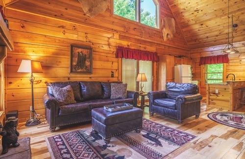 No bar in your back sofa beds in our cabin! Only quality comfy mattresses for everyone as this cabin sleeps up to eight in beds. The base rate includes six guests, and an additional $15 per night is charged for each guest above six. Main floor features Master suite with King and private bath. 2nd suite with queen and semi-private bath. The loft serves as the 3rd bedroom featuring four single memory foam bunks built into the walls. Kids especially love the bunks, but adults can also sleep comfortably in them.