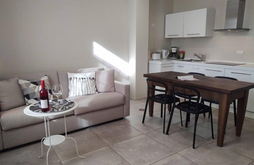 "Monolocale", 1-room apartment 40 m2, on the ground floor. Beautiful furnishings: living/sleeping room with 1 double sofabed, dining table and satellite TV. Open kitchen (dishwasher, 4 induction hot plates, toaster, kettle, microwave, electric coffee machine). Shower/WC. Oil heating. Terrace furniture, deck chairs (2). Facilities: washing machine. Internet (WiFi, free). Reserved parking (1 car). Please note: non-smokers only. Maximum 1 pet/ dog allowed. Private entrance. 097032-CNI-00004
