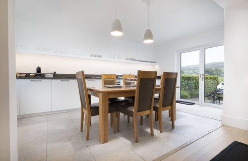 Upon entering you will be struck by the beautiful presentation of the property. Everything has been carefully considered, and you will feel instantly assured you are in for a treat stay. The kitchen / dining area is a masterclass of modern styling and great ergonomics - whether a quick snack or full-blown family meal, everything you need is here, and the dining table is perfectly placed for service from the chef. When it's time to relax, the lounge has so much space, and a wonderful woodburner to boot. Let's not forget the views from the lounge and kitchen- from both areas there's an uninterrupted view to the top of Hampsfell (a relatively easy ramble from the house and with great views from the top). A good sized smart TV awaits for an evening's entertainment, and three leather sofas are perfect for all to sit in comfort.