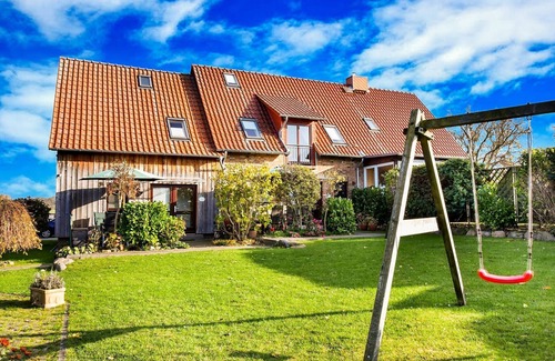 Children will love the play area with a swing, slide, sandbox, and climbing features. Nearby towns like Grevesmühlen and Klütz offer shopping and essential services, while a network of bike paths lets you explore the stunning Baltic Sea landscape. Another apartment is available in the same house, making it perfect for families or friends traveling together but wanting separate spaces.