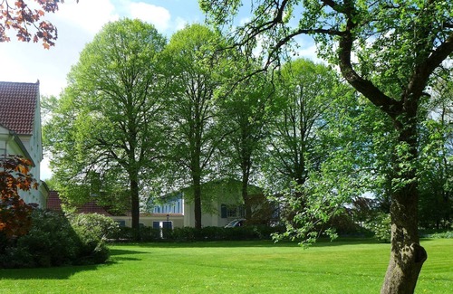 The holiday apartment "Speeldeel" is located in the 1st. Upstairs. It consists of a generous living and dining room with open kitchen, two bedrooms and a shower room. The living room goes up to the roof, two floor-to-ceiling windows facing south with beautiful views of the baroque garden and a lake. A roof window gives the room airiness. The holiday apartment gets its name from the "play goals", which are located above the bedrooms and the bathroom. This gallery, accessed via a staircase, has a low ceiling height and is ideally suited as a playground for children.The floors are in light oak, the walls are plastered white, the decor is kept in the Nordic country house style, everything looks spacious, bright and comfortable. The open plan kitchen has ivory-colored rustic finishes and a light oak counter top. It is arranged on a corner and is equipped with all necessary equipment. Opposite the kitchen is a large dining table. The two north-facing bedrooms are equipped with comfortable double beds. The sunny shower room is equipped with high quality sandstone tiles and has washer and dryer. The apartment has no direct access to the garden. The cobblestone courtyard and garden are accessed via a walk on the ground floor.