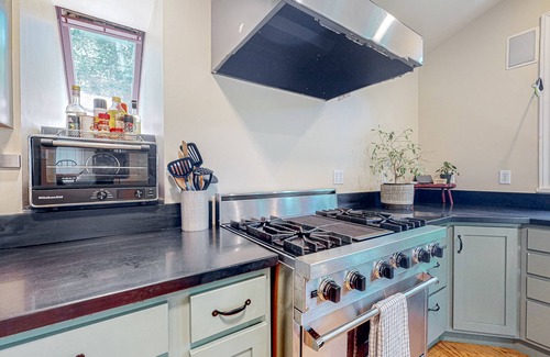 Cultivate complete serenity while enjoying the home's wilderness ambiance and bohemian charm. Sit back and relax with your loved ones here, or head into the full kitchen where culinary creations will be prepared with ease. The home's bedrooms are equally comfortable featuring soft linens, pleasant color palettes, and partial air-conditioning. A private washer/dryer and board games round out the home's interior perks.