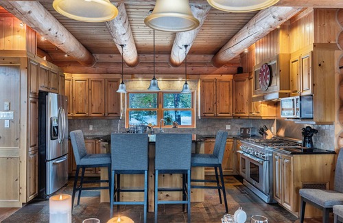 Moose 36 is a spacious 6-bedroom lakefront chalet located at Fiddler Lake Resort, 15 minutes from Saint-Sauveur. Access to all the resort’s amenities and activities is included. This stunning log home is the perfect getaway for family and friends, comfortably accommodating up to 12 guests across three levels.