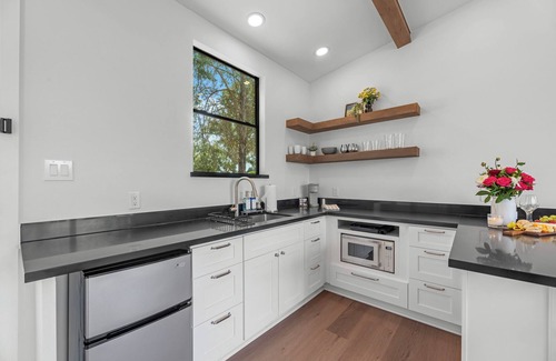 Finca Agave Retreat offers 13 luxury tiny homes, each designed with modern farmhouse decor. The 10 acre gated property features a fishing pond, heated swimming pool, individual fire pits, and future addition of Pygmy goats and barndominium. The property is a perfect place for family gatherings, business retreats, and weddings. It offers a peaceful rural atmosphere with southern charm, and convenient access to both countryside experiences and urban amenities. Each modern tiny home offers guests a cozy retreat with 1 king bed in the bedroom and a sofa bed in the living room. Make Finca Agave Retreat your next place to unwind and build lasting memories.