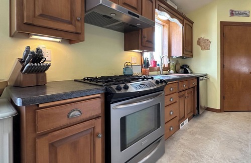 Northeast Wisconsin is waiting for you at this 2-bedroom/2-bath home. The bedrooms feature queen beds and extra air mattress, perfect for a refreshing night's sleep. With amenities like AC, heating, and WiFi, your stay will be superb. The bathrooms offer showers and hair dryers for your convenience. We'll be available to answer any questions while you stay at our home.