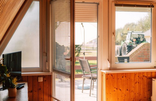 Living room with TV, open kitchen with kettle, coffee machine, toaster, microwave, stove with oven, shower / WC, steep stairs to the two bedrooms, terrace, bed linen included. Please bring towels! Maximum occupancy 4 + 1 extra bed 15 € per night. Pets are allowed on request (one-time cleaning fee € 50 per pet). NON-SMOKING HOUSE IMPORTANT: Please inform us that you have received your booking documents. Gladly by e-mail. Please bring towels!