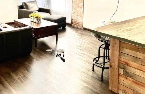 Apartment located on the Salmon River in beautiful downtown Pulaski. Newly renovated, large 75" tv in living room. Open concept, newly furnished. Comes complete with a Keurig, Roku tv and cable. Close to shopping.