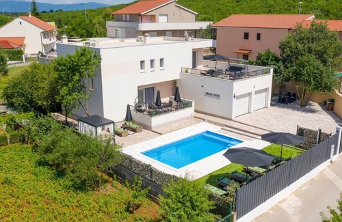 Villa Dreamin with Heated Pool & Hot Tub in Dicmo Kraj, Split-Dalmatia County, Croatia, offers luxurious accommodations with a heated pool, hot tub, free Wi-Fi, air conditioning, a fully equipped kitchen, and private parking. Located in a peaceful area, it features a private garden, terrace, and BBQ facilities. It's ideal for families, couples, and groups seeking a tranquil retreat with easy access to Split's beaches, historic sites, outdoor activities, and local cuisine.