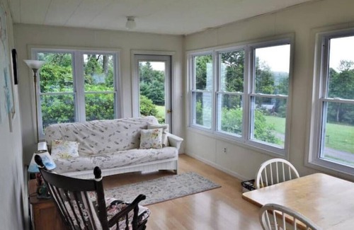 Take it easy at this unique and tranquil getaway. Discover a country experience and make unforgettable memories with family and friends. This is a working farm with a few beef cattle and chickens. There is also a pond on the property. The sun room gives you ample opportunity to watch out over the fields. There are three very friendly outside cats as well.