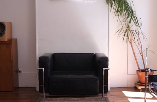 This very quiet flat is on the first floor of a nineteenth century building. The windows open out onto a street (lounge facing south) and gardens (bedroom and kitchen facing north). In spring, you’ll probably be woken up in the morning by the many birds singing in the trees.