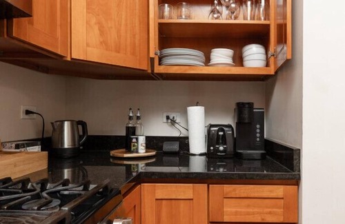 In-unit laundry, sunroom, smart TV with Airplay, Nest thermostat, self check-in, high-speed Wifi, and Keurig coffee maker