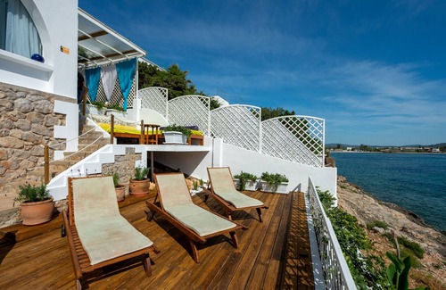 Charming little house located in the bay of Talamanca on the edge of the sea with beautiful views. It is located just a few minutes walk from the beach of Talamanca and the center of Ibiza by car.