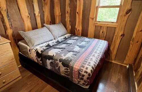 Book your next Northwoods getaway at the Flyway Resort! The Big Game Suite (Cabin 4) is located on the Phillip’s chain of lakes (Wilson Lake) and the ATV/Snowmobile trail. Featuring 1 king bedroom suite, large living room with Smart TV and queen sofa sleeper, full bath, laundry, and fully equipped kitchen. Includes a private dock and covered front porch. Sand beach, kayaks, paddle boat and canoe are available for cabin guest use. We can’t wait to host you!