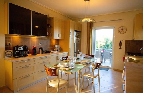 Stay with your whole family or your company in this luxurious accommodation with plenty of space for moments of relaxation. The accommodation is designed to serve guests for a few or more days of stay. It is fully equipped. The garden with the grass and the beautiful flowers is the place that will impress you, as well as the view from the balconies of the rooms. It is located a breath away from the center of Nafpaktos (3 km) and just 500 meters from the sea.