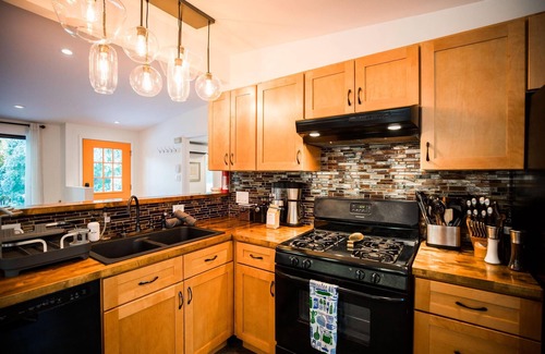 The entire 3 bedroom, 3 bathroom cabin is clean, sun soaked and recently renovated. The cabin is surrounded by trees on almost all sides, and offers a large yard and expansive deck with stairs down to the grass to match.