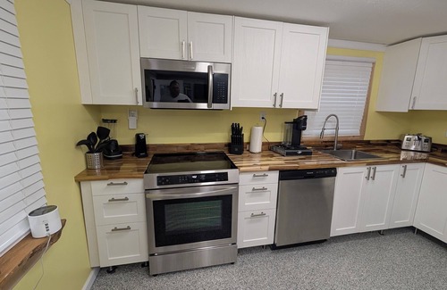 Known as the Bass Capital, you are just a few minutes away from the St. Johns River, Crescent Lake, and even Lake George, the second largest lake in Florida. We have a fish cleaning station, a grill, and a griddle that are in a screened-in area on the water with fans and a TV. A large granite-top table that seats 10.