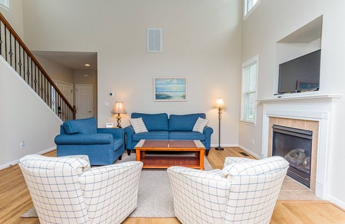 With the Commons pool less than 10 minutes away by foot and a couple minutes or less by bike or car, this charming single family home features 5 bedrooms and 3.5 baths, comfortably accommodating up to 12 people. There is a full kitchen, a first floor ensuite primary bedroom, a laundry room with a full-size washer & dryer, a loft-style lounging area, an attached garage packed full of games, an enclosed porch, and a rear deck overlooking the lush lawn and pond.