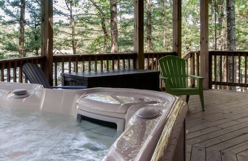 The lodge is spacious with 3,600 sq. feet of living space, the great room has a 26-foot cathedral ceiling and a beautiful stone fireplace as the focal point, tastefully decorated and equipped with all the amenities of home. Five bedrooms, 3 baths, wonderful large kitchen with all the bells and whistles, large screen smart TV, washer, dryer, game room with foosball table, hot tub, gas grill, bonfire pit, private pier, swimming raft, canoe, 2 kayaks, paddleboat, paddleboard, row boat & an abundance of outdoor furniture. This home has it all and would be perfect for large families gatherings, reunions, group getaways, & retreats.