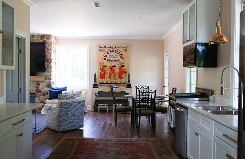 This beautiful, newly constructed guest suite is located on the incredible Union Grove Farm property, alongside a 7-bedroom French country home on a vineyard. Take in the fresh air from your private front porch surrounded by grapevines or walk around the large pond.