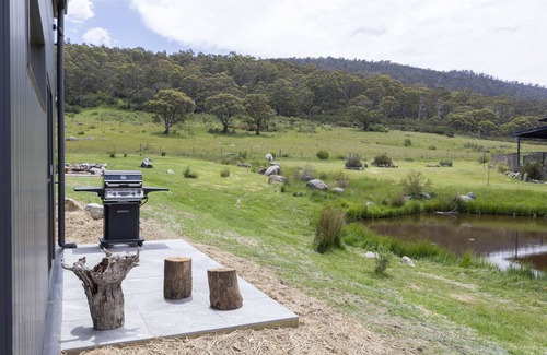 Discover a hidden gem in the heart of the Snowy Mountains with Frog Hollow—a modern, private studio retreat offering uninterrupted views across a serene pond to the Crackenback Range. This is the kind of place where you can spot grazing kangaroos, elusive deer, or a group of wild brumbies right from your window.